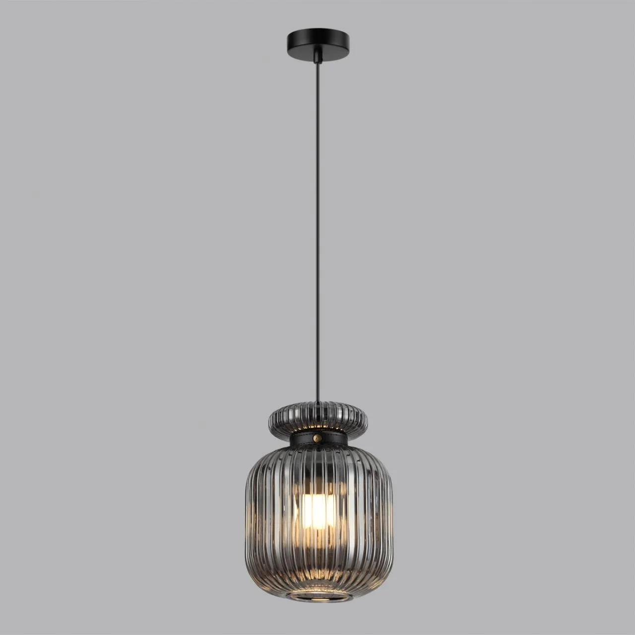 5042/1B PENDANT ODL24 445 черный/дымчатый/металл/стекло/эко.кожа Подвес E27 1*60W JUGI