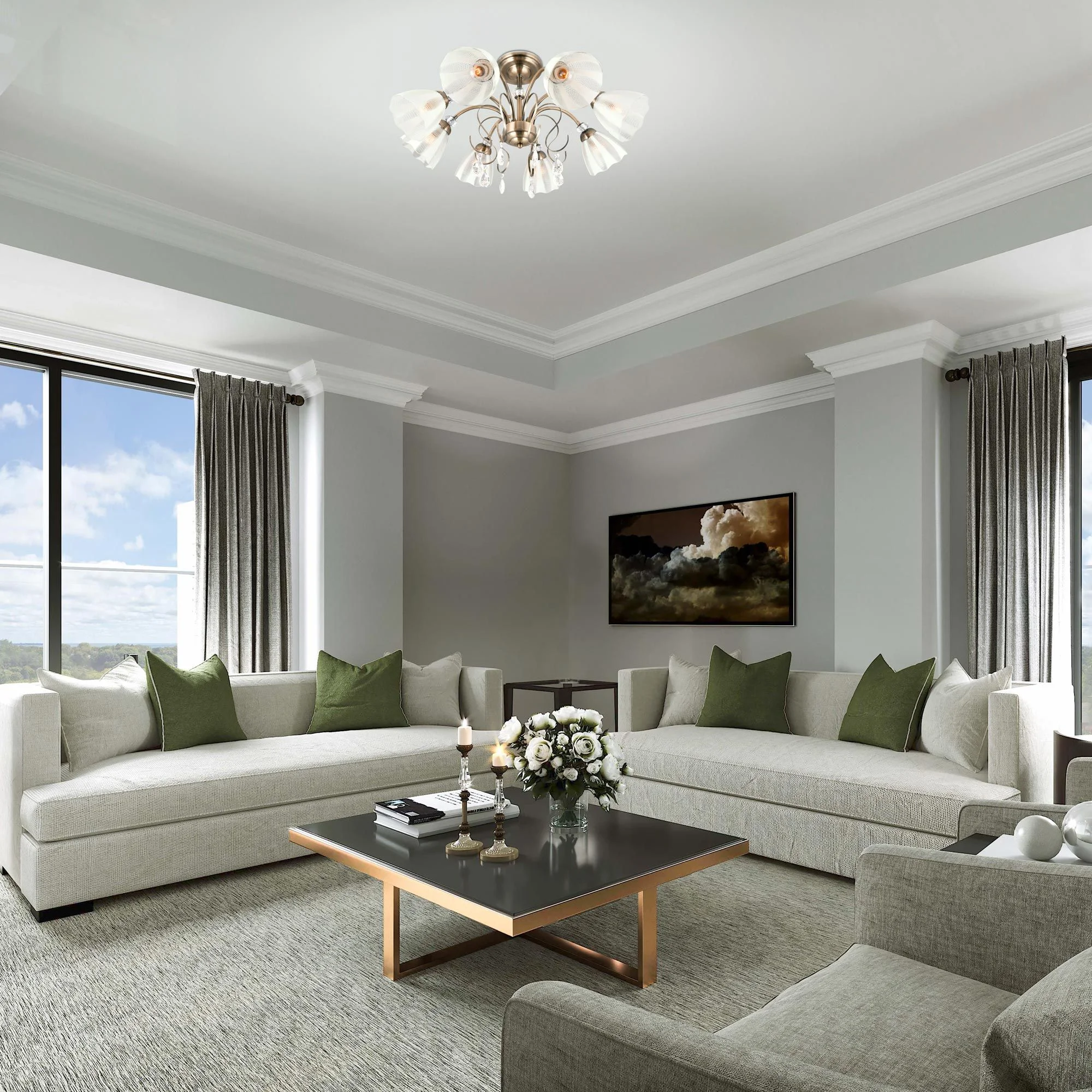 Потолочная люстра со стеклянными плафонами 30155/8 античная бронза