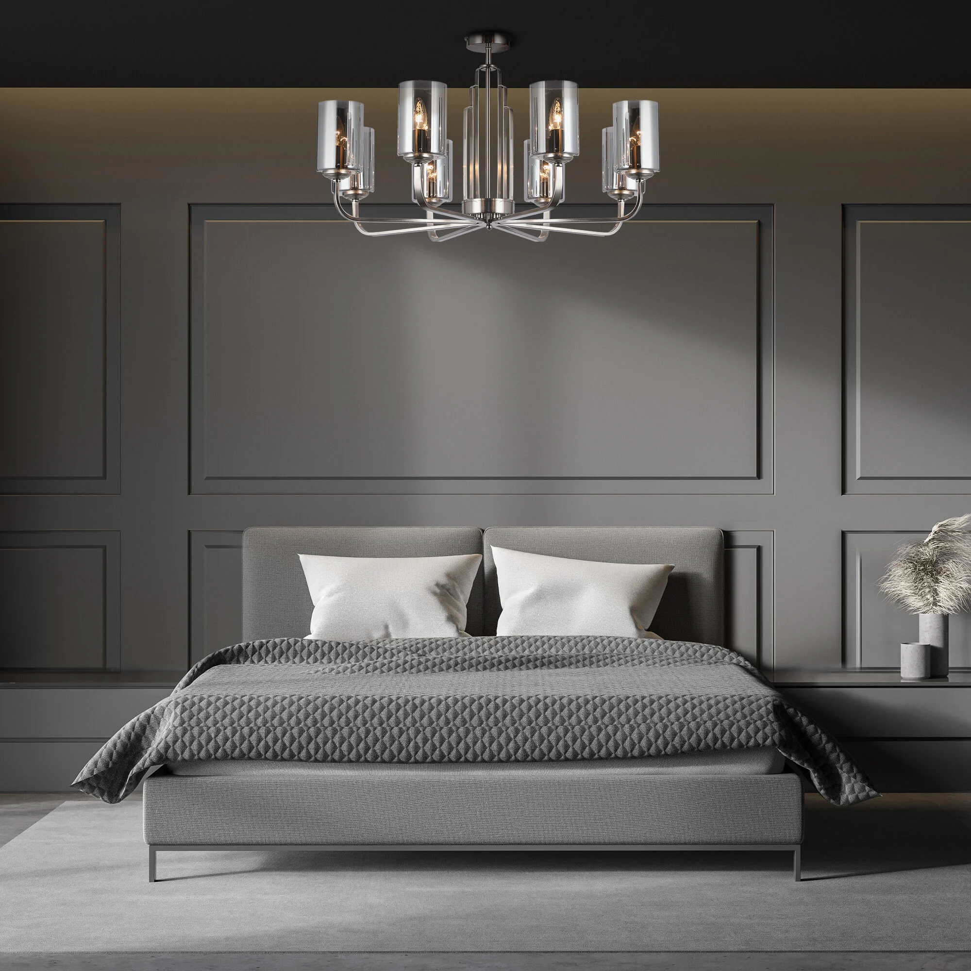 Потолочная люстра со стеклянными плафонами 60138/8 сатин-никель