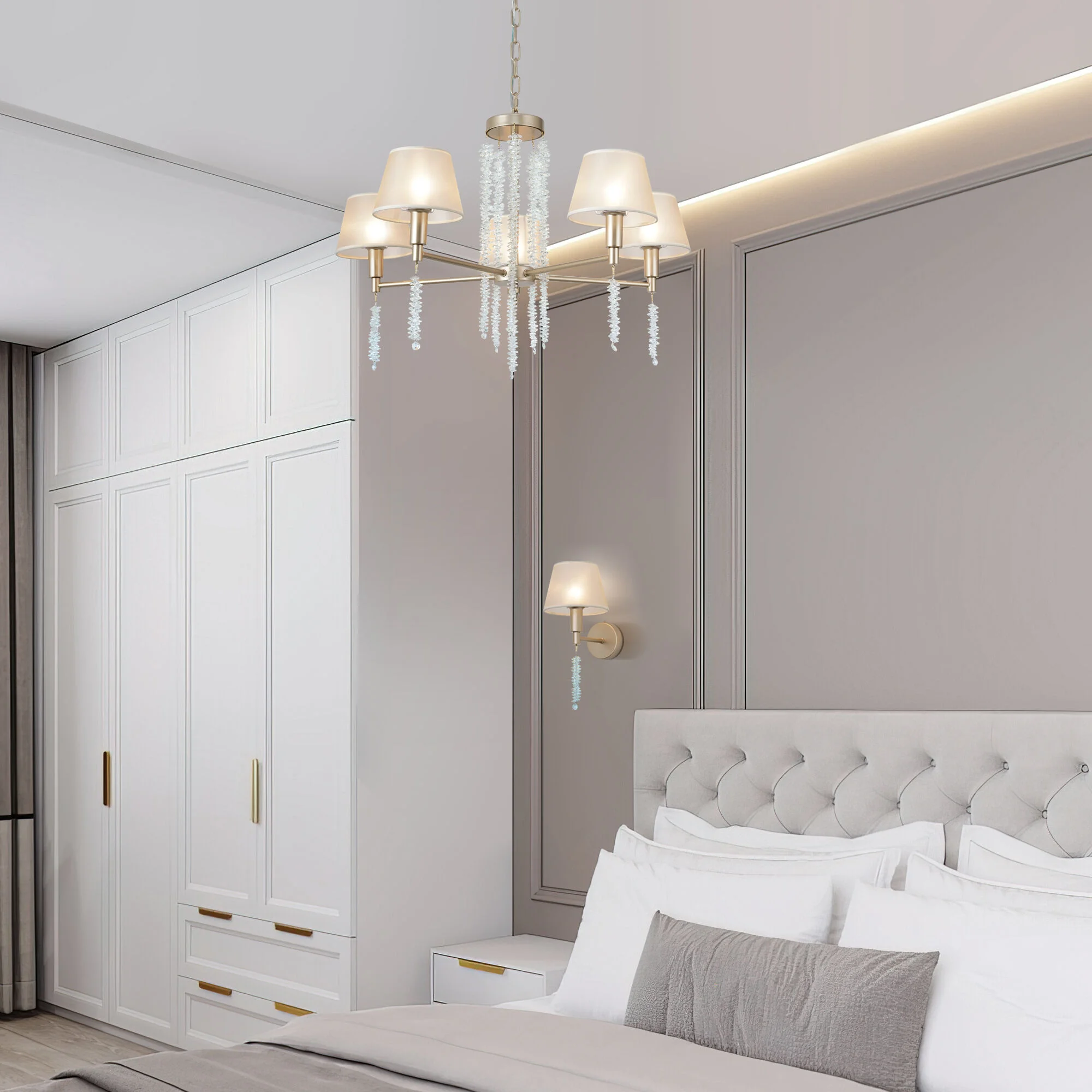 Подвесная люстра с тканевыми абажурами 60148/5 матовое золото