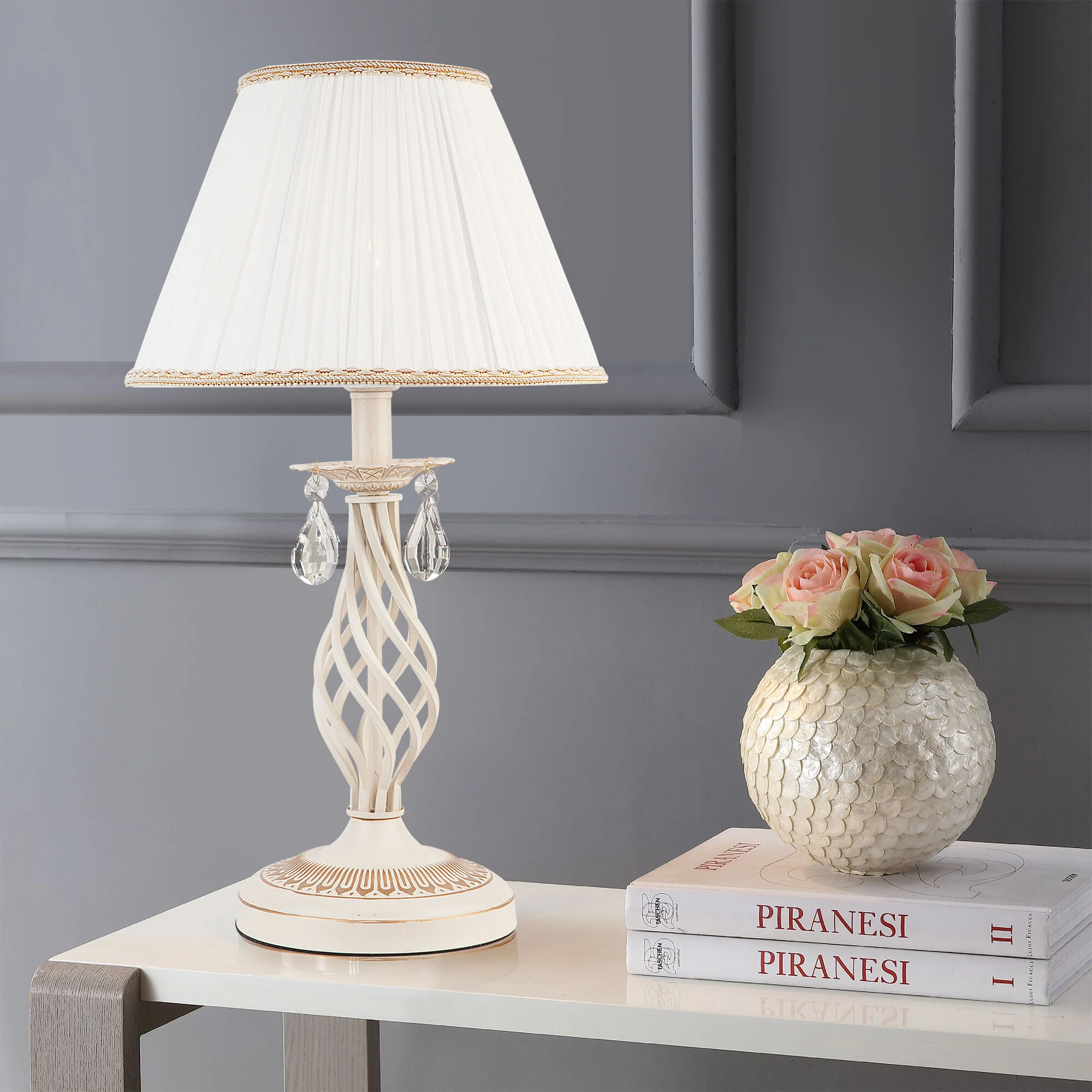 Настольный светильник с тканевым абажуром 10054/1 белый с золотом