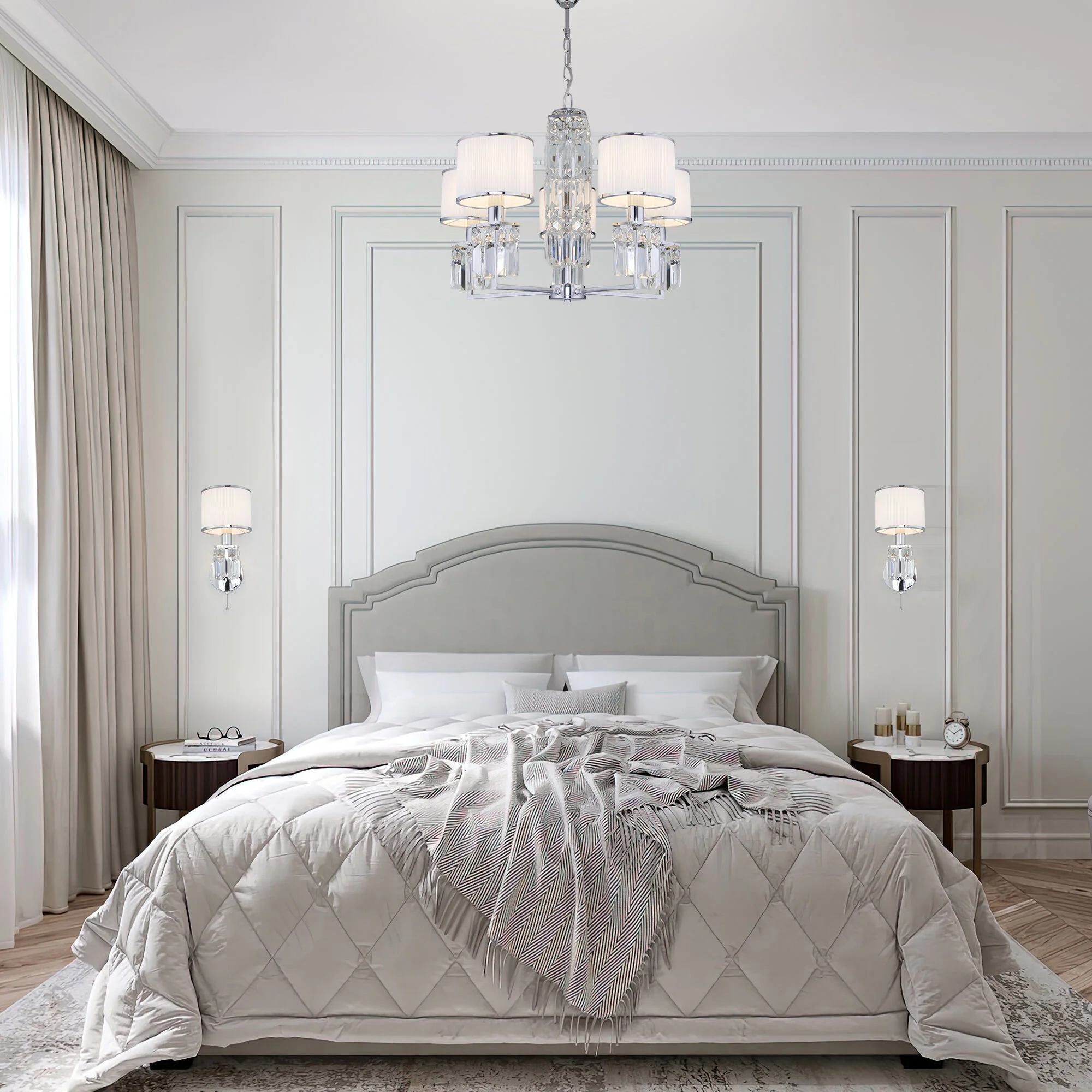Подвесная люстра с тканевыми абажурами 10099/5 хром