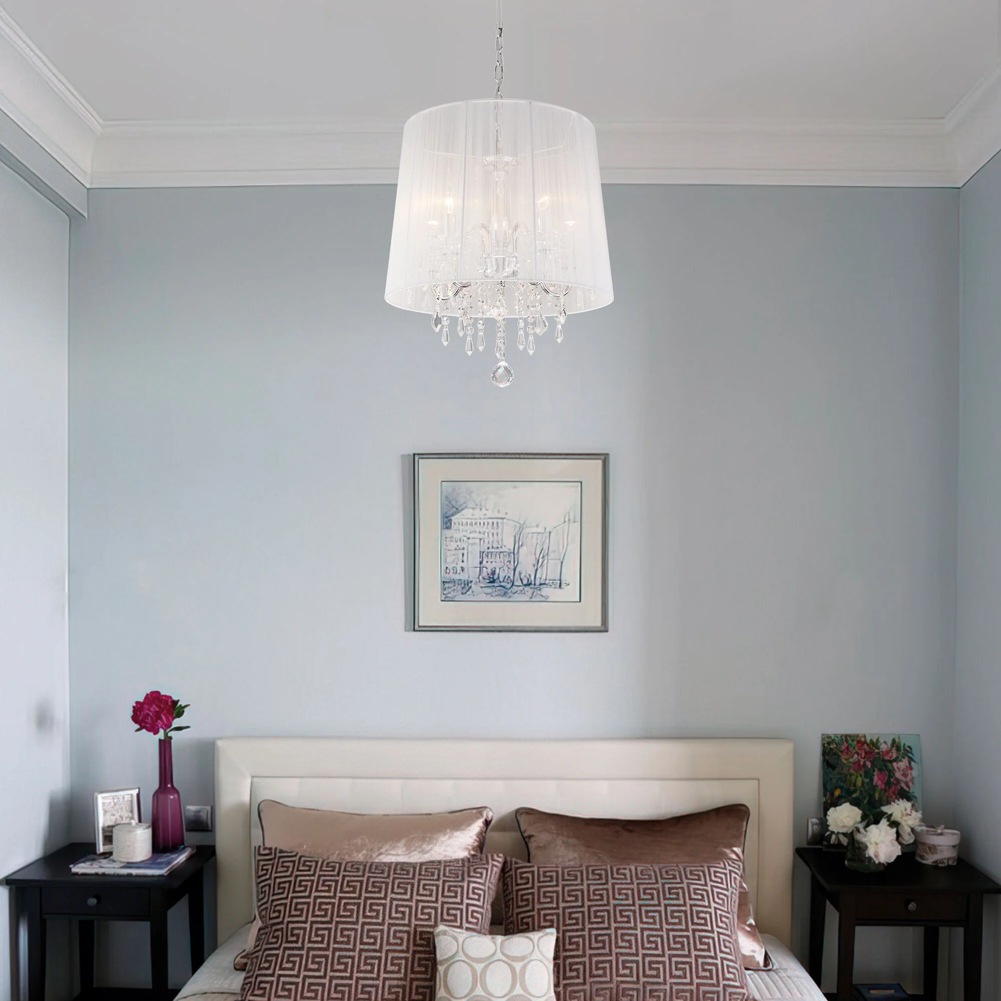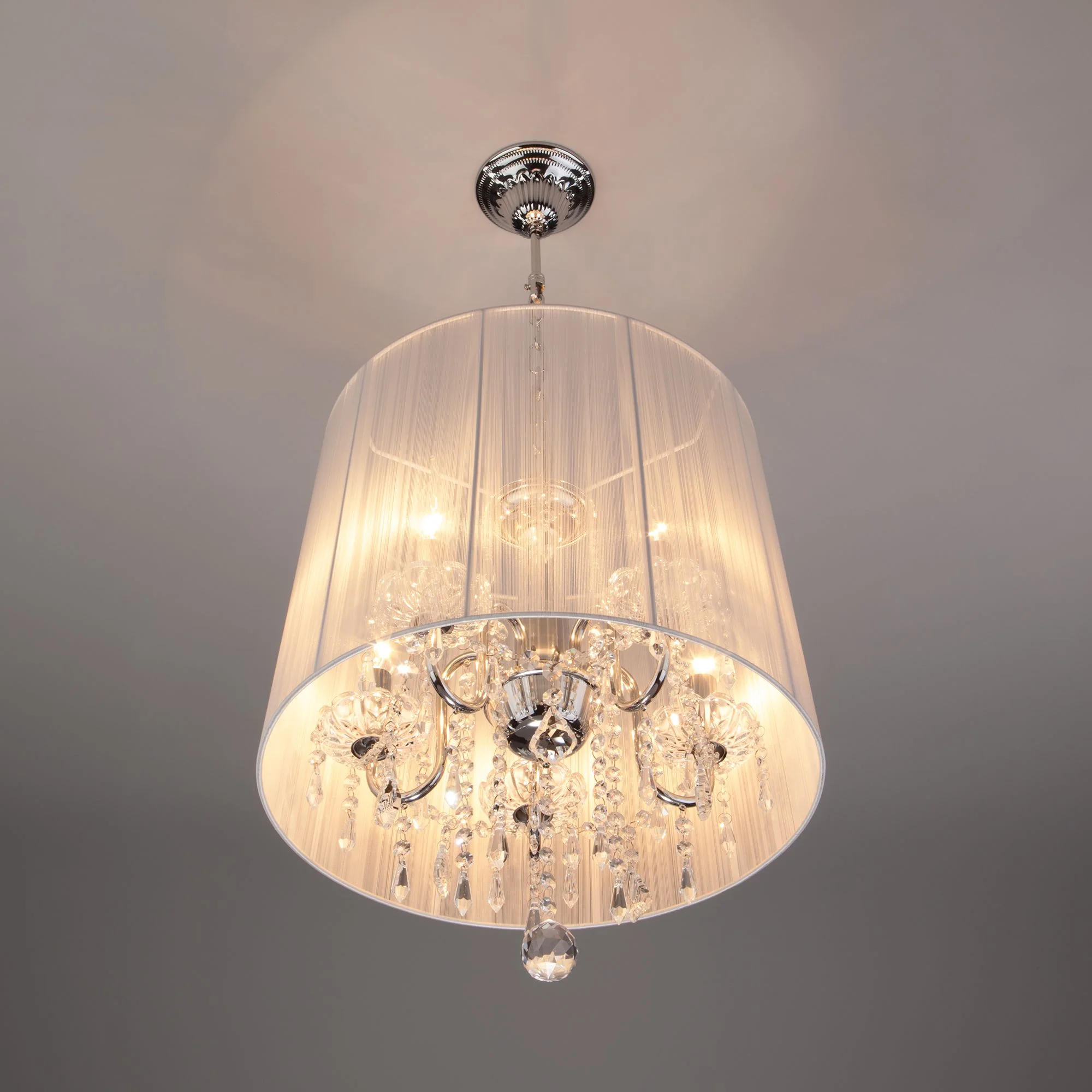 Подвесная люстра с тканевым абажуром 2045/5 хром / белый