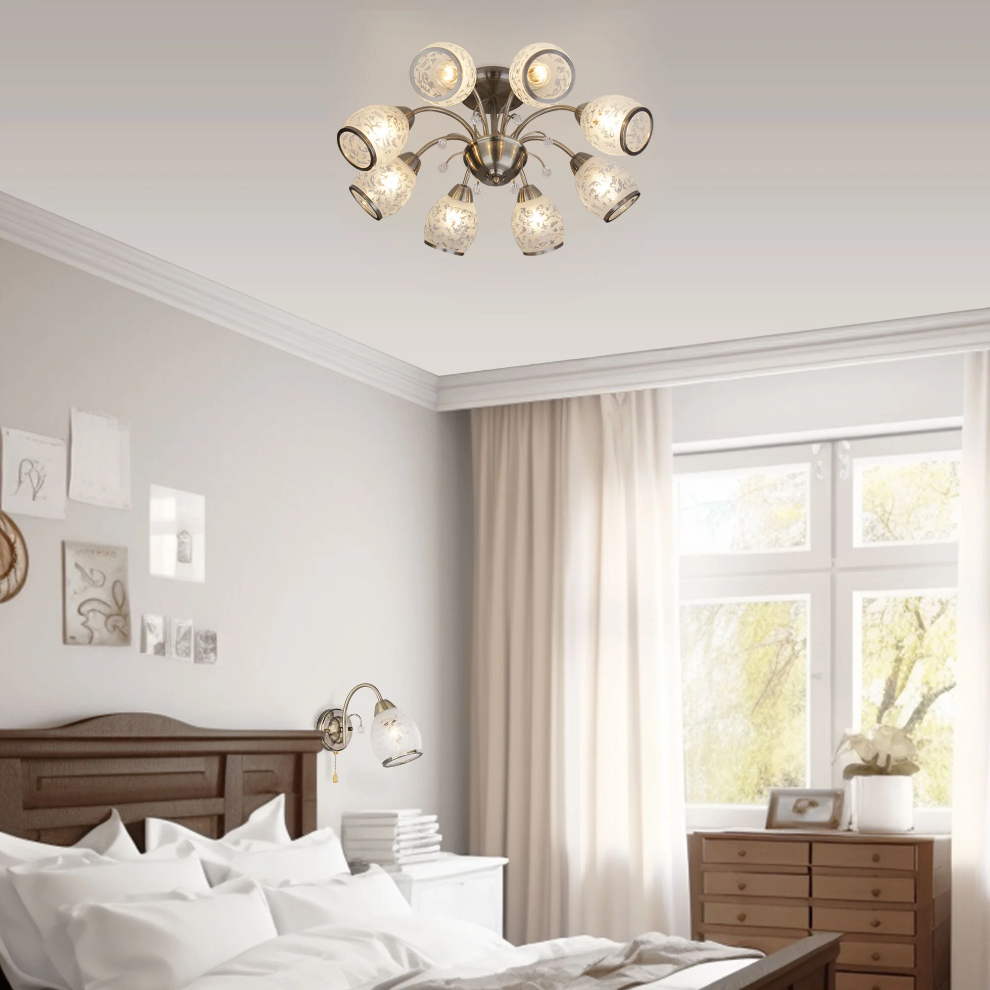 Настенный светильник со стеклянным плафоном 30026/1 античная бронза