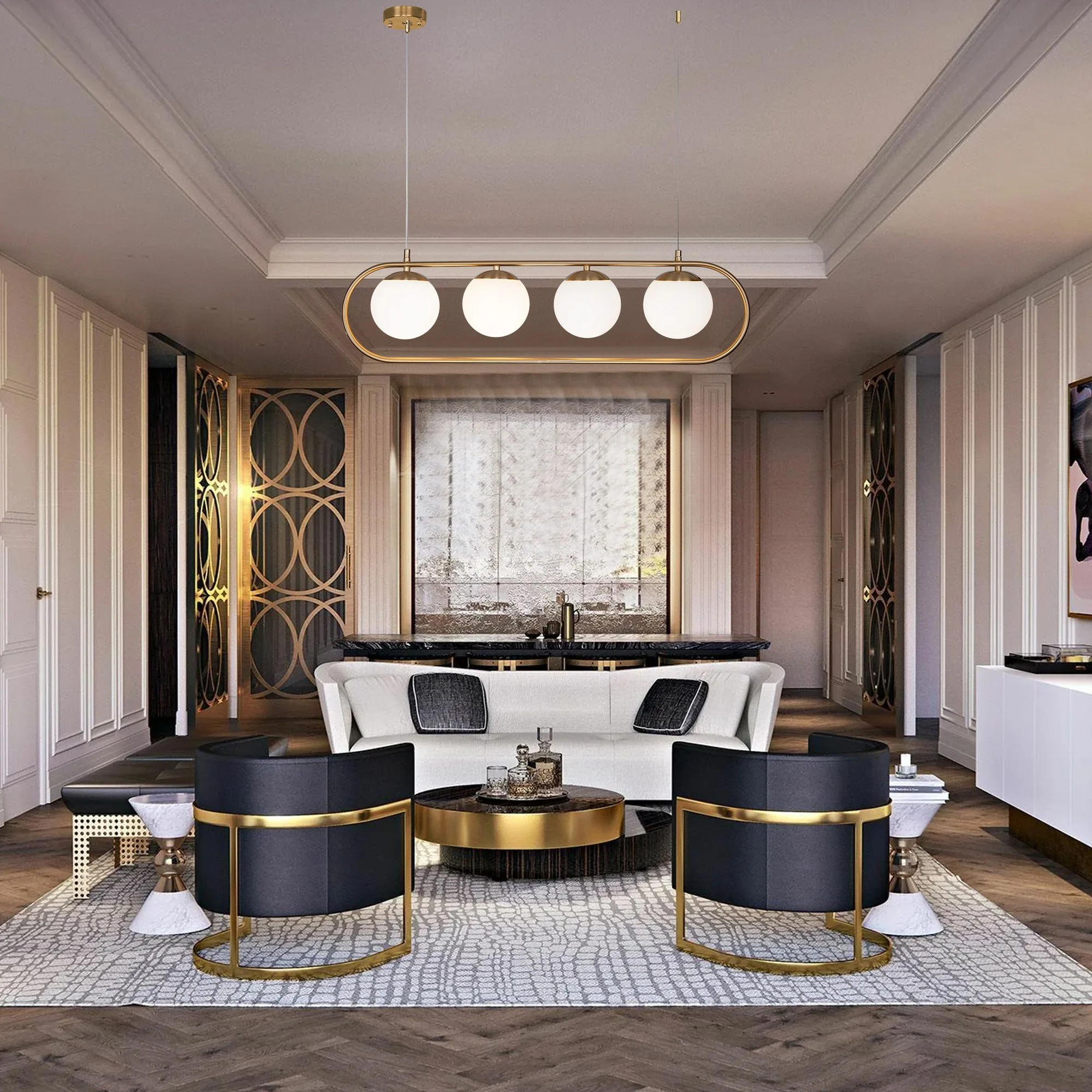 Подвесной светильник со стеклянными плафонами 50089/4 золото