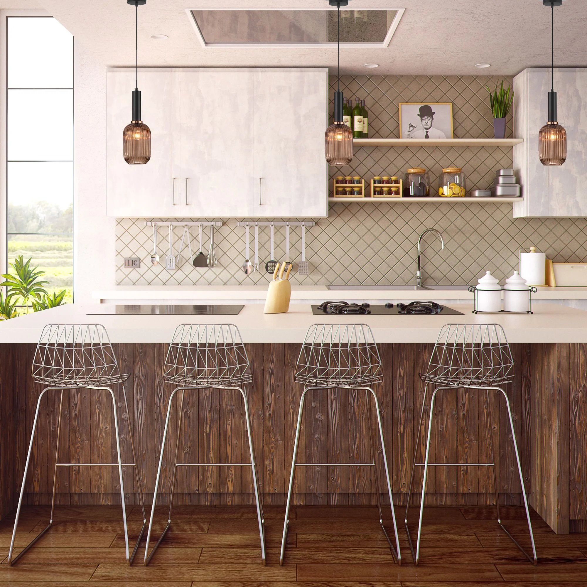 Подвесной светильник со стеклянным плафоном 50181/1 янтарный