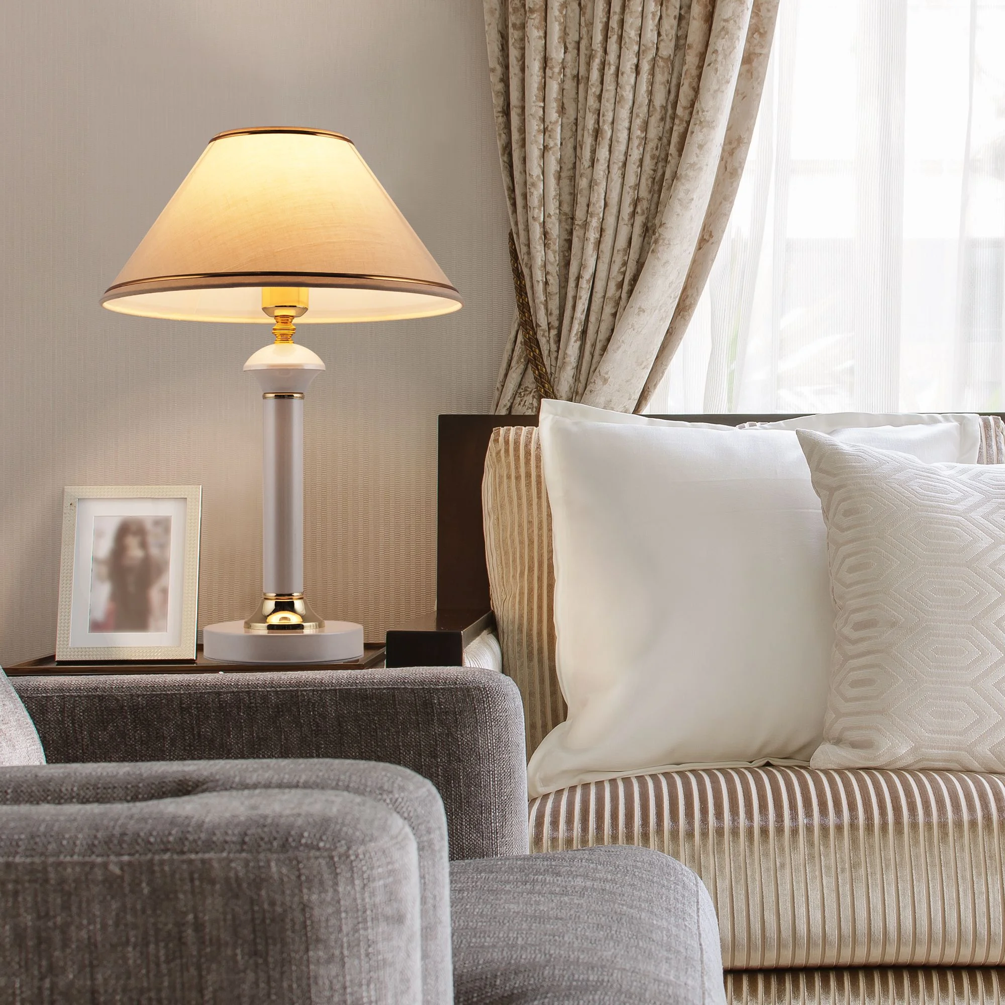 Настольный светильник с тканевым абажуром 60019/1 глянцевый белый