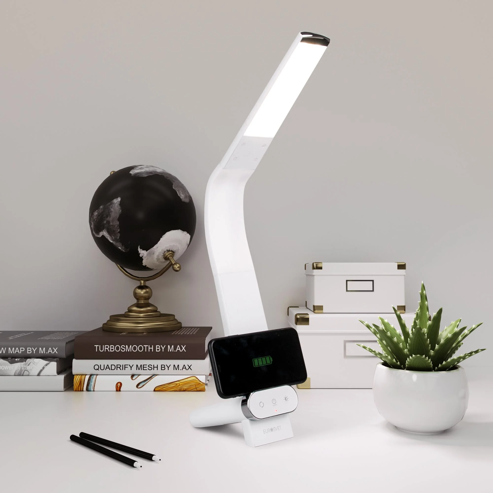 Настольный светодиодный светильник с сенсорным управлением и беспроводной зарядкой 80427/1 белый