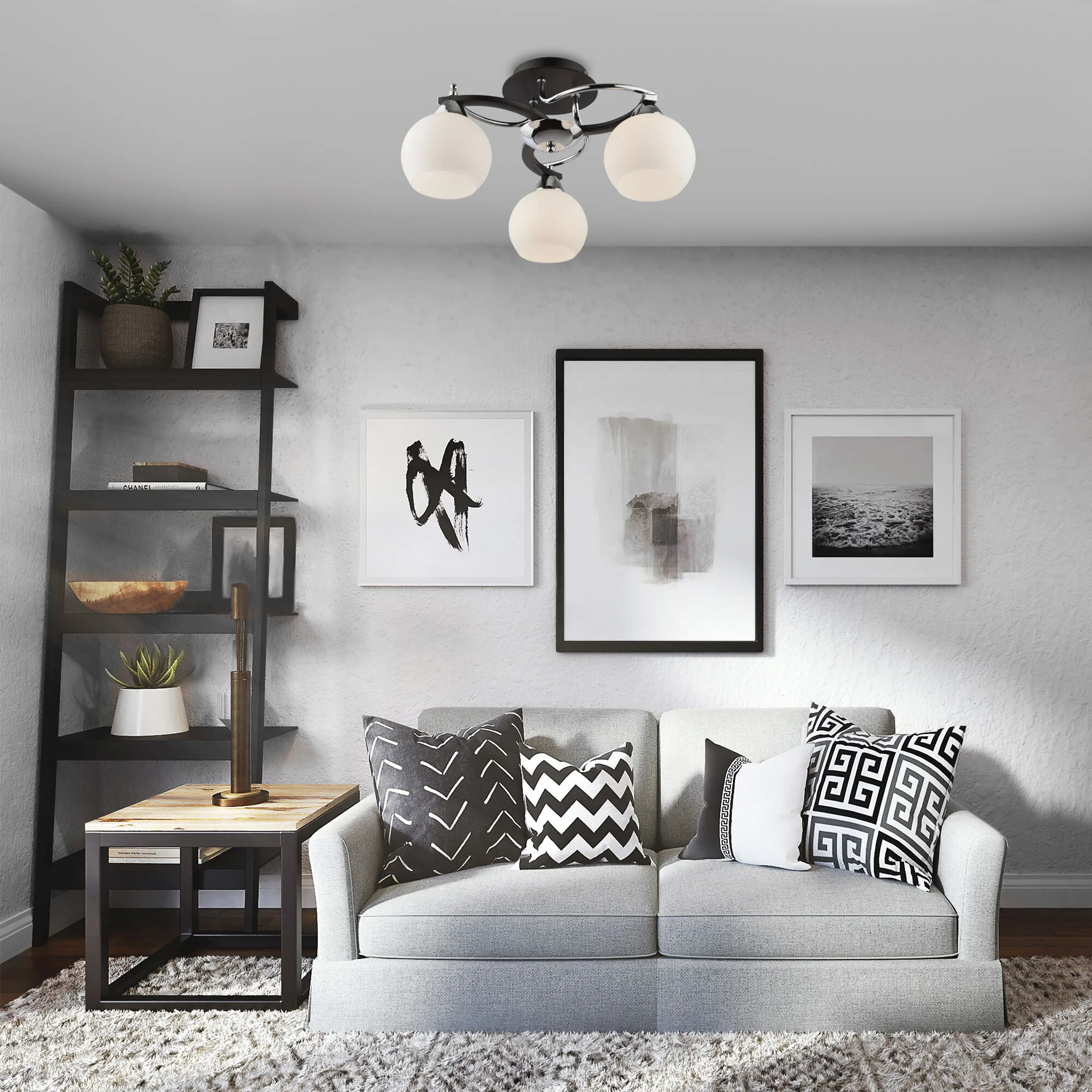 Потолочная люстра со стеклянными плафонами 9654/3 хром / венге
