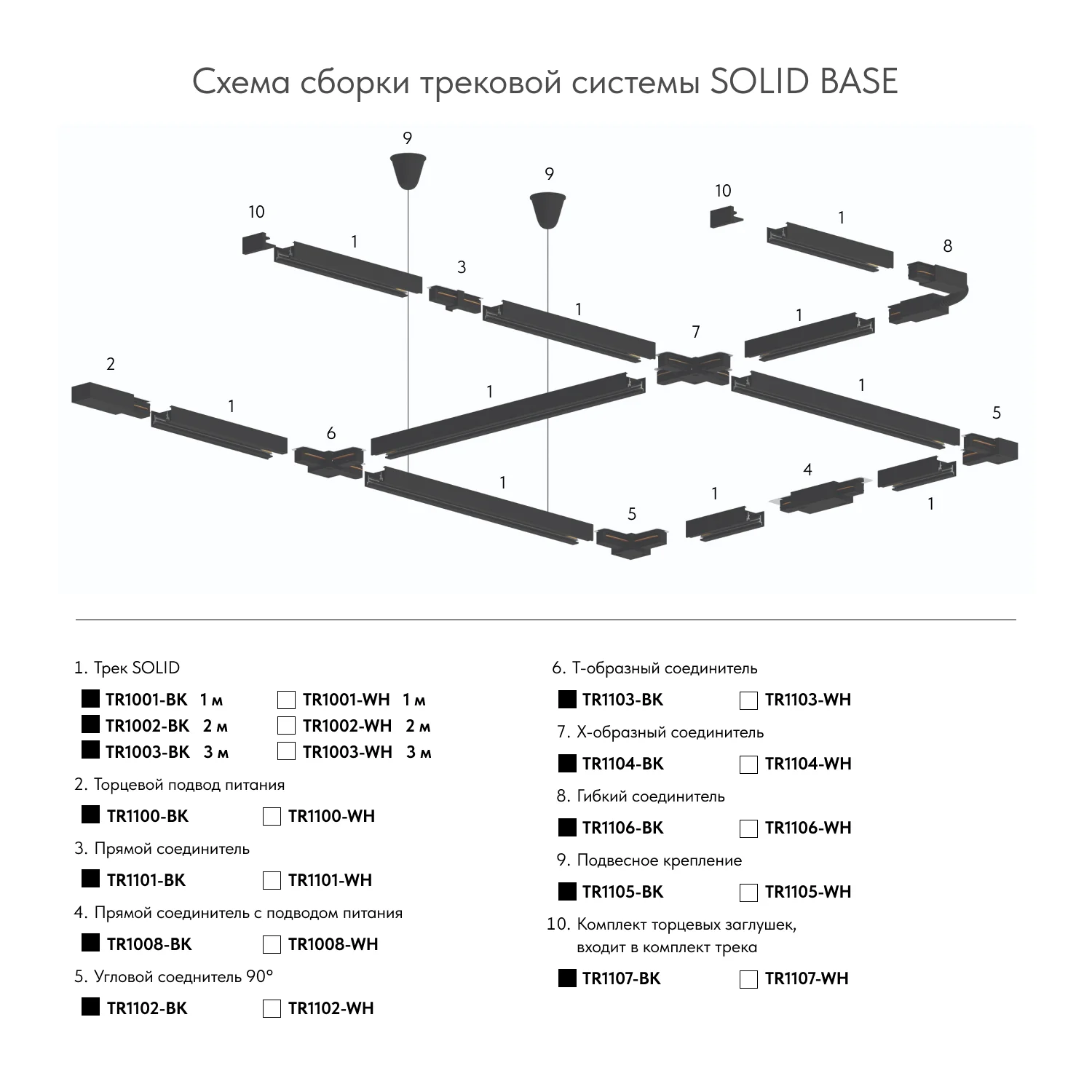 TR1105-WH Подвесная система для треков, 1,5 м, белый