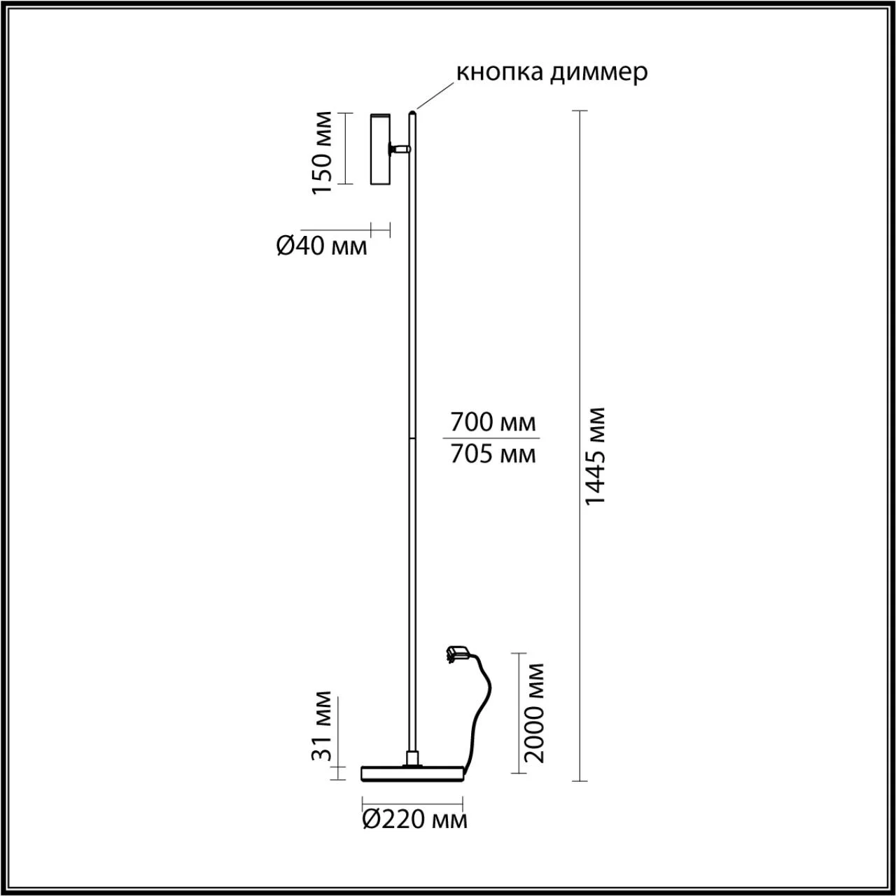 6643/5FL HIGHTECH ODL24 303 черный/металл/акрил Напольный светильник (выкл. и диммер на корпусе) IP20 LED 6W 3000K 220V MALI