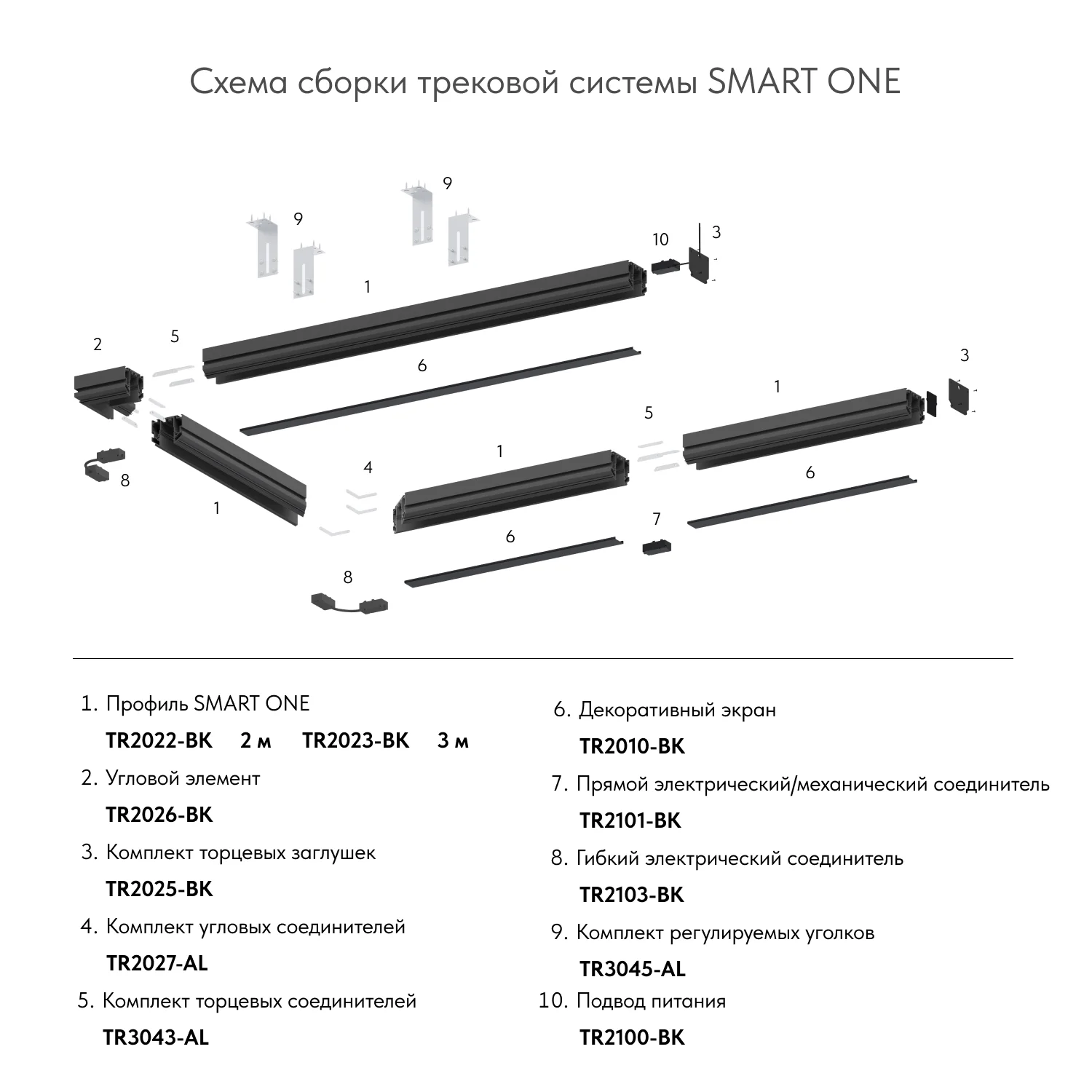 TR2022-BK Профиль-трек SMART ONE, для натяжных потолков, 2 м, алюминий, черный