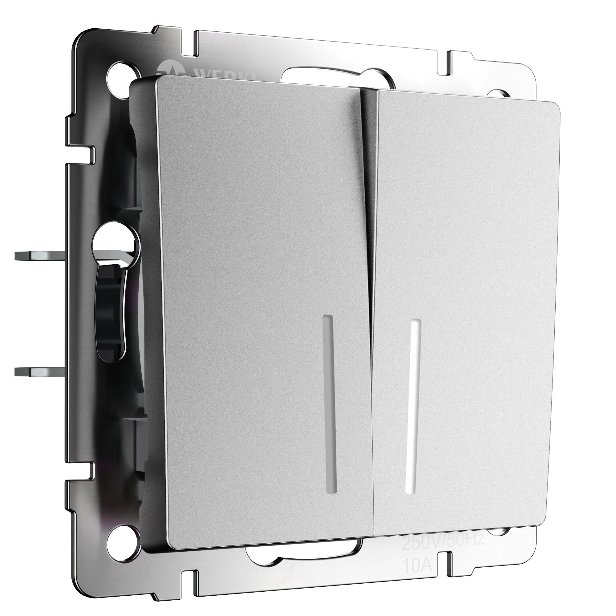 W1122165/ Электроустановочные изделия - Выключатель двухклавишный проходной с подсветкой (серебряный матовый)