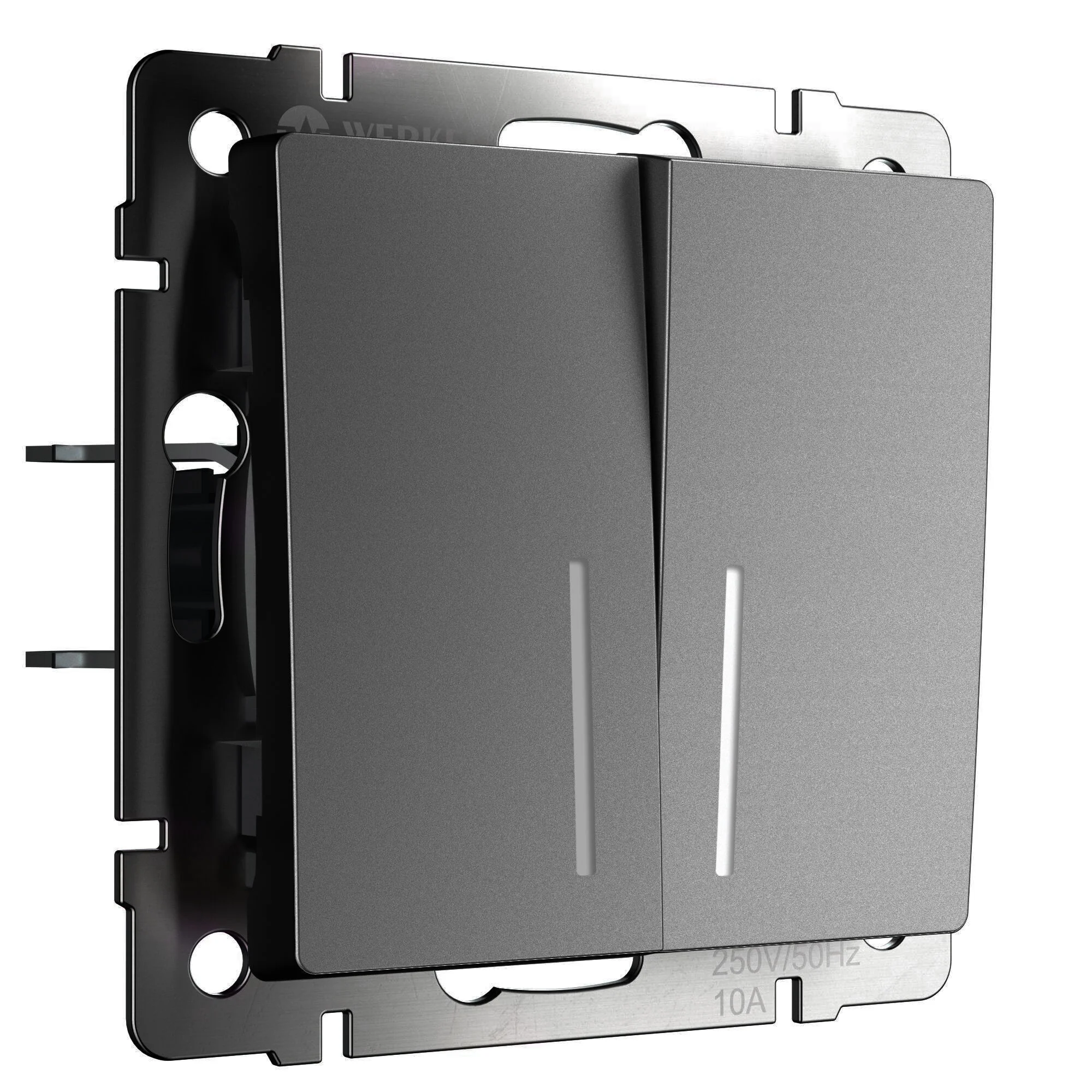 W1122164/ Электроустановочные изделия - Выключатель двухклавишный проходной с подсветкой (графит матовый)